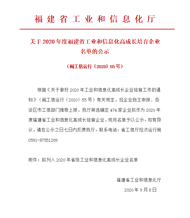 【瑋晟機(jī)械】入選2020年省級(jí)工業(yè)和信息化高成長(zhǎng)企業(yè)名單