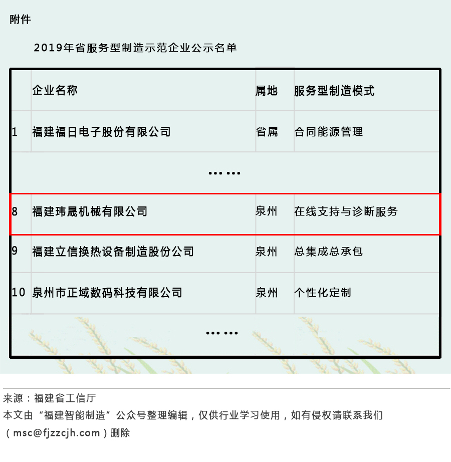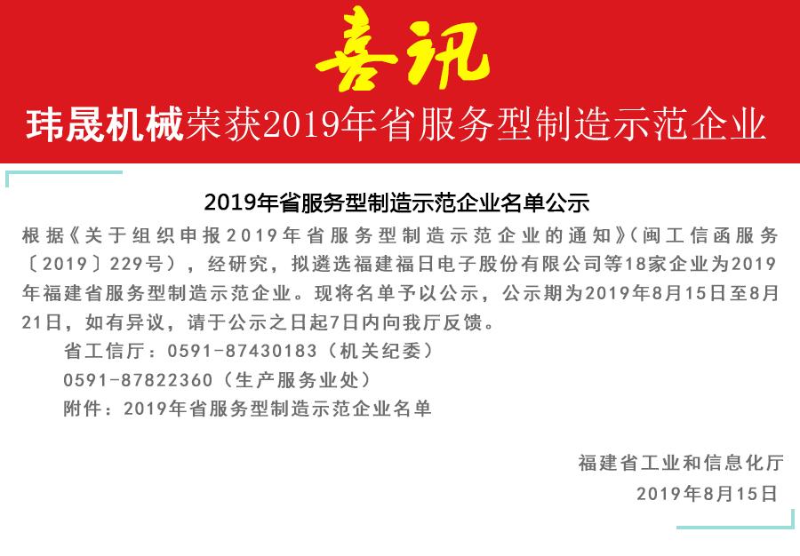 喜訊!【瑋晟機(jī)械】榮獲2019年省服務(wù)型制造示范企業(yè)